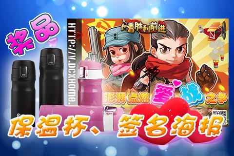 活动内容:《向着胜利前进》微信用户(v_dcxhome),11月28日当日10:00-20:00,整点发布带有游戏帐号的截图给《向着胜利前进》官方微信,每整点第一位者就可获得奖品。共11个机会。获奖名单将在《稻草熊游戏》新浪微博公布。