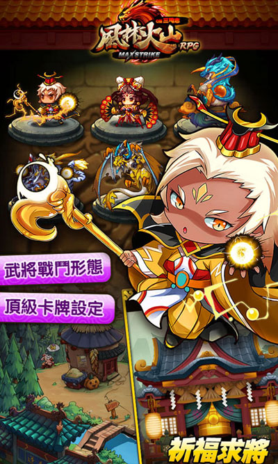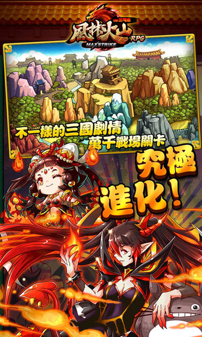 导 读: | 今日,OneClick Game诚意巨献,2013年收官巨制《风林火山》强势开启iOS和Android双版本不删档测试!经典历史神话题材、日系Q版人物设计,全新的核心战斗系统,丰厚的超值好礼。喜爱三国 |