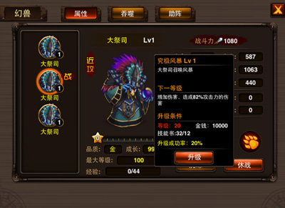 幻兽都升级了,但技能却始终是一级,怎么可以!1.6新版本中新添加了怪兽技能等级训练书,全面提高技能等级和技能效果。部分技能提高到特定级别会有质的飞跃!快来提升自己的幻兽伙伴,在竞技场和副本里面大显身手吧!