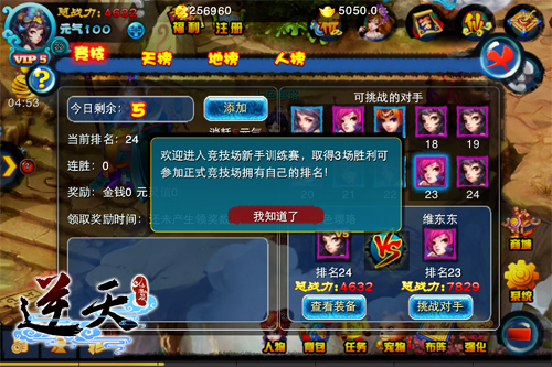 参加竞技场挑战可以获得修为值,修为值可以用于提高人物境界。在竞技场可以根据战力高低,装备好坏,自行挑选对手进行战斗,挑战胜利后排名根据战绩自动提升。竞技场排名越高,每日奖励就越丰厚,排名前三的玩家每天都可以领取一块武器镀金石,使用之后可为武器提升大量属性!