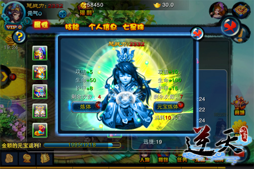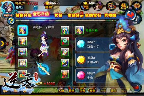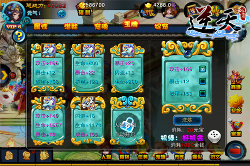 你的装备落伍了吗,你的装备已经无法够抵挡对方的刀枪火箭了吗?不用着急,《逆天仙魔录》中,只要你收集足够的材料与升级卷轴,就可以方便快捷地升级装备。而当你材料不够或者是缺乏卷轴的时候,可以到试炼场去扫荡副本,斩妖除魔后将有机会得到这些原材料,然后就可以免费升级装备,全面提升装备基础属性值。同时,你还可以提高装备镶嵌的宝石属性数值,让你成为更为众敌畏惧的对手!