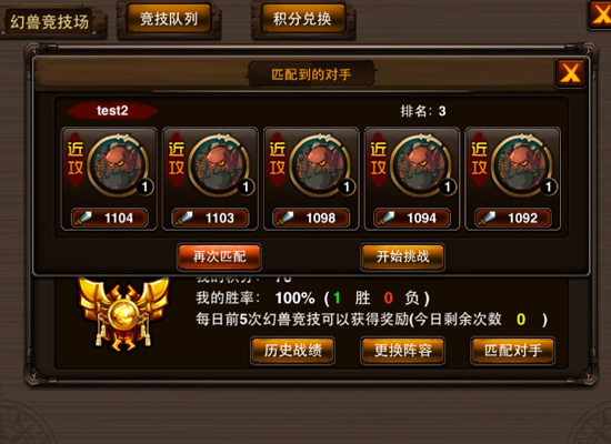 幻兽在养成后,就可以参加幻兽竞技场,其实这里可以组建幻兽战队来的,挑选个头最大的上去准没错,赢了有积分,排名,输了会掉。有些同学的排名上不去一般都是胜率太低。