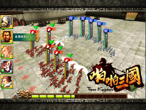 还在玩手机、ipad上的贴图假3D游戏吗?别再OUT了,现在的技术已经让手游进化到全3D时代!三国国战 IOS游戏之王《啪啪三国》凭借世界顶级u3d引擎,率先实现角色、城市、场景全3D建模,玩家不仅有自己专属造型,更能统领包括长枪阵、骠骑阵、长弓阵等多兵种全3D军团,在丰富场景复杂地形上与对手展开场面宏大战况瞬息万变的千人国战。