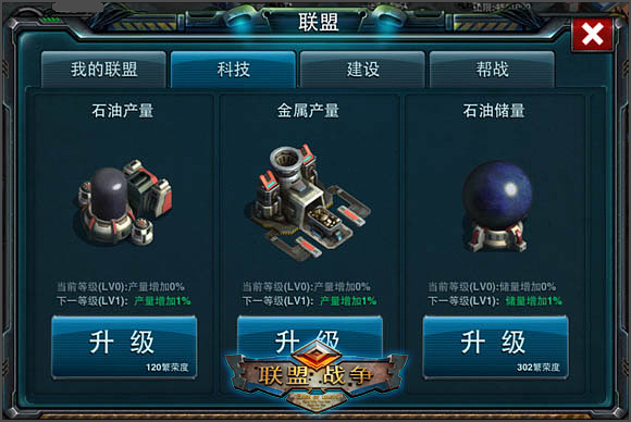 联盟建设获取的“繁荣度”,可以用于联盟科技的提升,可以增加资源产量和储量,非常实用。