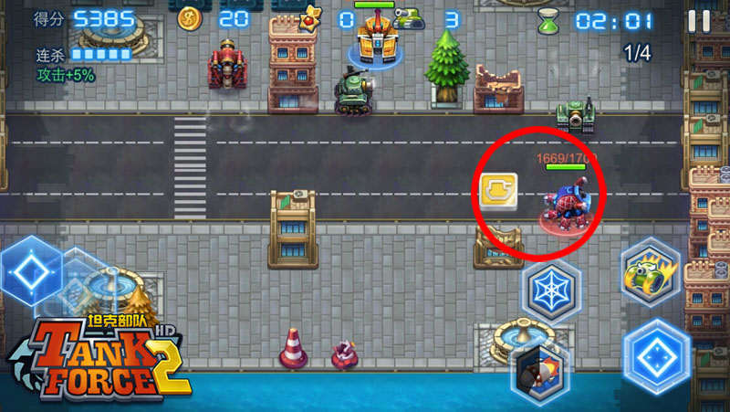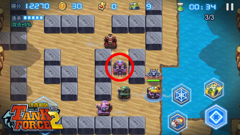 《坦克部队2》众多坦克英雄中,还有能发声波的坦克?当然没有,但只要有了“声波”道具,任何坦克都会变身“声波侠”。变身道具是消灭坦克后随机在地图刷新的,不仅能改变坦克外形,还能改变坦克的攻击方式。例如“声波”道具会让坦克发出的炮弹变成声波,可以穿透建筑物攻击敌人,“隔山打牛”神功有木有,配合适当的走位,一次就可以消灭一条直线上的所有敌人!