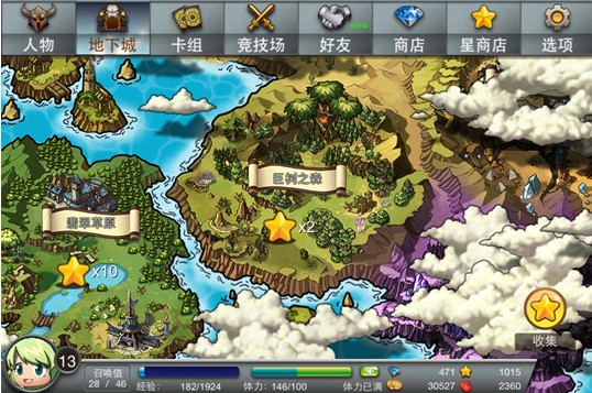 地下城系统:这个系统其实可以理解为《魔域战歌》剧情流程部分,而这一点也是本游戏最大的特色之一,和其他卡牌手游只注重网络多人对战不同,《魔域战歌》的地下城系统为提供了玩家们丰厚的剧情流程体验,玩家在这里可以一关接一关进行游戏,另外地下城系统对每个关卡设置了普通、英雄、挑战3个难度,玩家需要完成前一级的难度才能解锁后续的难度。随着难度的提升,敌人的实力也会提高。可以说地下城系统大大增加了游戏的丰富度和玩家的可玩性。