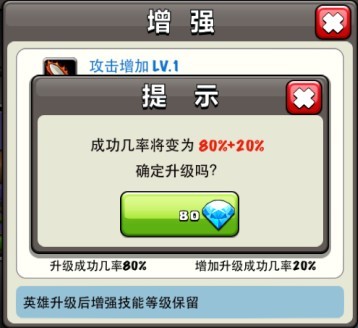 所以,黄点加得越多,成功几率越小,玩家需要合理利用升级方式,用最少的资源为英雄带来最大的强化。