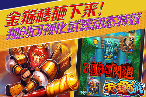 《天天爱西游》不仅承袭了经典卡牌游戏的玩法,还在此基础上强化了卡牌游戏表现力度,在战斗中引入了全动态可视打击制作战斗特效,极大增强了游戏的代入感。可视化武器动态打击,引爆全新卡牌战斗快感。不单卡牌会动,武器也会动,看看你的金箍棒如何横扫千军!