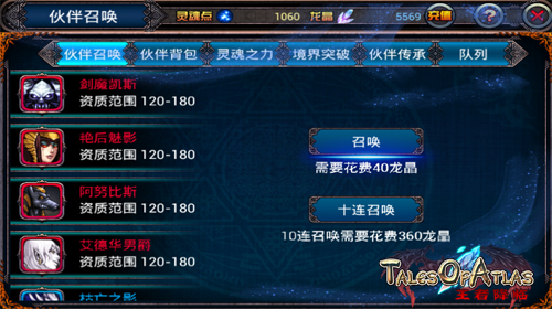 目前,伙伴的召唤有两个途径,可以用龙晶召唤,也可以用游戏送的伙伴召唤卷进行召唤。目前召唤出的伙伴有三种品质:绿色、蓝色和红色。其中红色是传说级的顶级伙伴。不同颜色的伙伴会有不同的资质体现,体现在战斗力。玩家需要逐步培养他们,以此提升自己的团队的综合战斗实力。