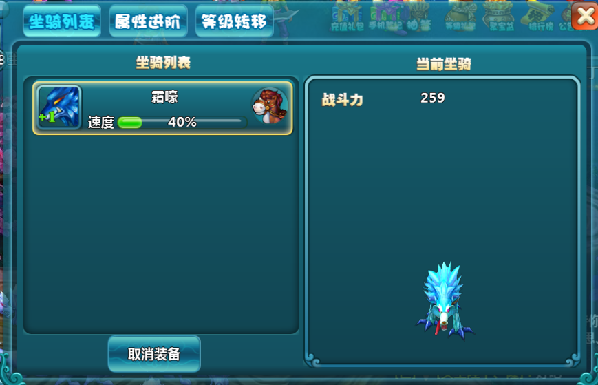 在拥有坐骑后,玩家可以通过主界面系统打开坐骑系统,随后就会看见坐骑列表,属性进阶,等级转移等。