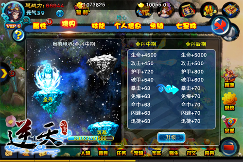 修成金丹代表着修行者与凡人的分水岭,而能否渡劫,则是能否从修行者转向仙人的极为重要的一关。修仙者经历无数的劫难,达到合体境界后,将会遇到天劫。只有渡过天劫,达到大乘期之后,才会飞升,最终成为一名仙人,可以任意飞升至仙魔妖界。境界的不同阶段,是《逆天仙魔录》游戏中修仙的修为在提升过程中最重要的标志,玩家可通过升级境界获得各项基础属性与战斗属性的提升。