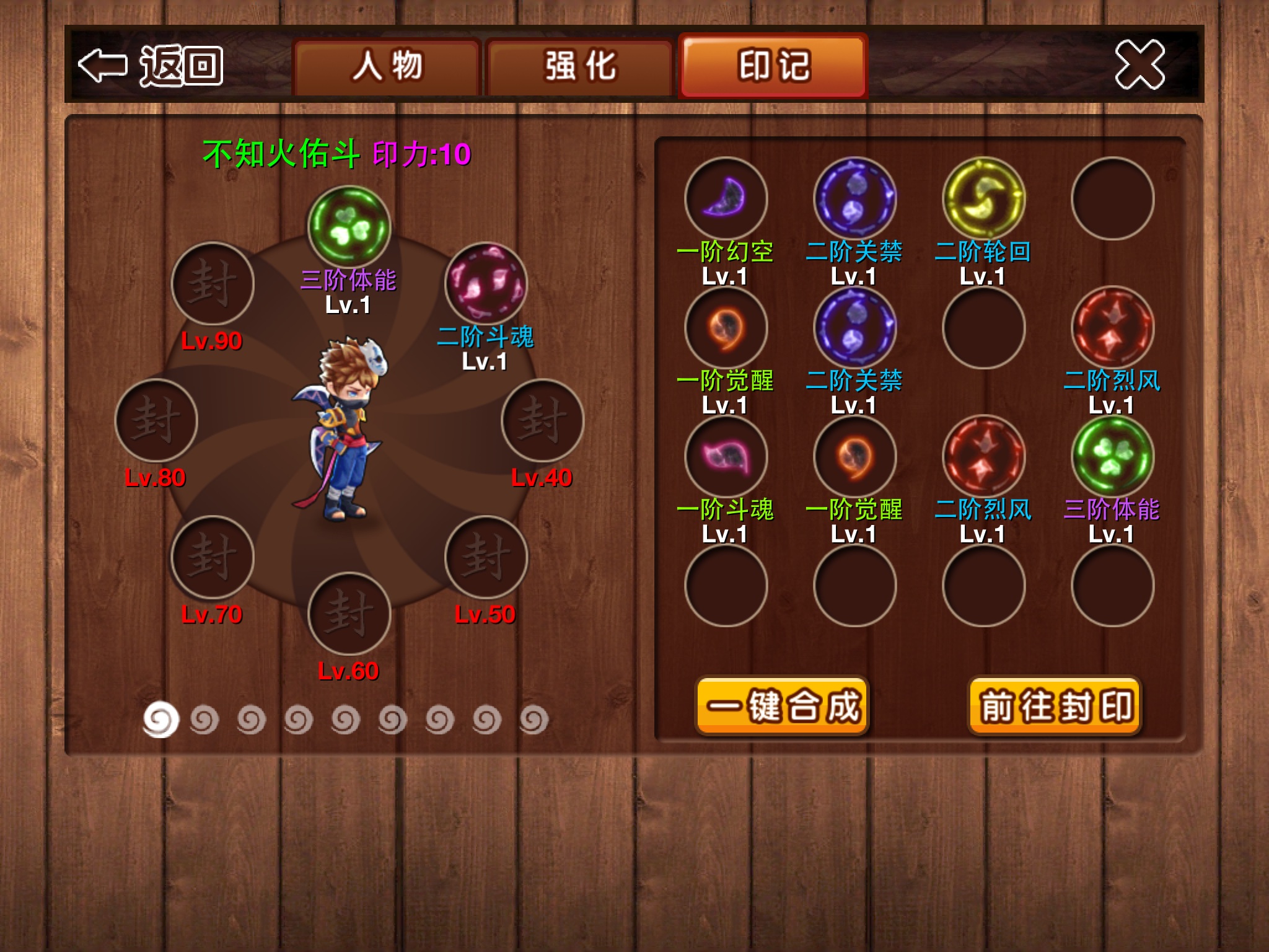 介绍了两种“低”级别秘术,《忍者来了OL》最强秘术即将登场。作为最强秘术,“咒印”系统自然有些来头。进入“咒印”界面,能够雇佣五位火影大师。使用银两召唤,可以随机获得一个印记。印记共有15种,对应提升15种角色属性。印记共有五阶品质区分,品阶越高印记就越强力,当然,印记可以相互合并吞噬,从而提高品阶。
