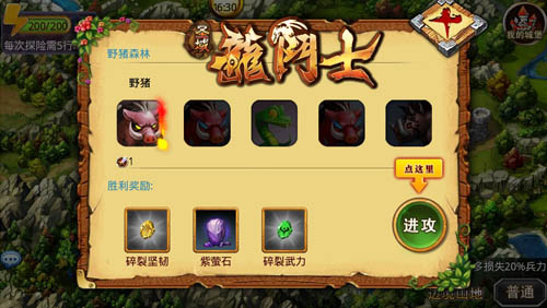 下面再说一下战胜野猪需要的战力。由于是初级怪物,所以野猪只有恨可怜的1点战力。玩家可以很容易将其击杀并且获得三星战斗奖励。