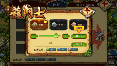 首先我们要带上所有的英雄,让他们站在阵型中比较有利的位置。接下来,给英雄配置自己最擅长统帅的兵种。在兵种选择界面,有星号标志的,就是英雄擅长的。接下来让他们带满兵,就可以出征了!