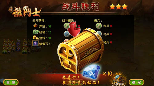 没错,这样我们再一次获得了三星奖励的宝箱。额额额,对,没有看错,还有闪亮的10钻石。这都是我们精心备战的结果啦!