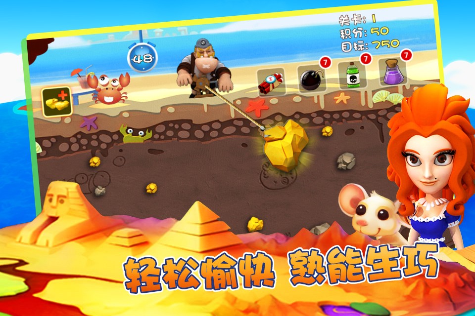 《钻石矿工》卓越版在游戏中设计了多种趣味玩法,其中老鼠毒药、矿工暴走等玩法十分精彩。你可以用毒药毒杀阻碍你淘金的小老鼠;同时,在能量积累满后还可以让矿工暴走,短时间内大量获得收益。