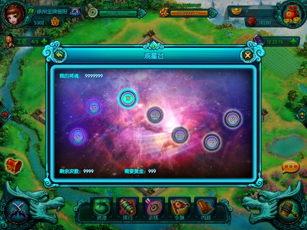 新增观星台功能。玩家每天可通过观星台获得将魂这种珍贵的资源,每日的观星次数有限,最好不要浪费哦。而获得到的将魂呢可以升级武将的专精技能,想知道有哪些专精技能吗?那就赶紧的加入游戏吧!