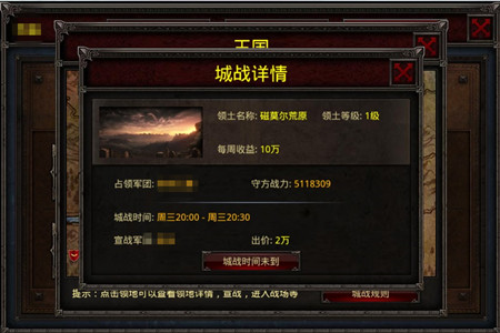 为了给小伙伴们带来丰富的体验,《封魔》城战划分为一周两场,周一0:00~周二21:00,周四0:00~周五21:00为宣战时间,周三20:00~20:30,周六20:00~20:30为挑战时间。城战以军团为单位,各位团长以竞价的方式选择挑战的城池,出价高者进入到挑战阶段,对手则是占据城池的玩家或者怪物。