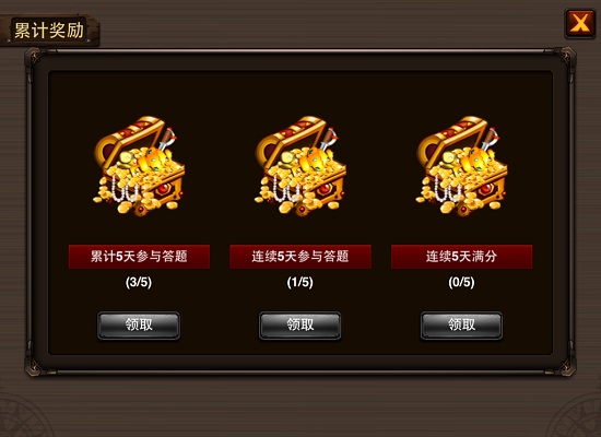 虽然《格斗之皇》答题玩法拿高分很难,但也算策划哥哥有良心,设定的奖励机制非常全面。除了答完题即时按得分获取奖励外,只要每天都参与答题,累积N天或连续N天参加,就能获得额外奖励,是不是很开心呢。当然,如果你才华出众,能连续N天获得高分,那给予的奖励,小编都无法想象了!