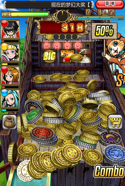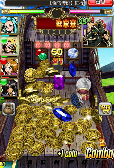 PS:如果你不幸在推币游戏中花光了金币,可以等待金币每分钟回复。另外,推币技巧不高的朋友,可以尝试用一些辅助道具来战斗哟。像是船只两侧防止金币滑落的防御之石等等。