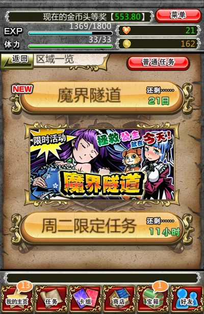 除了这两种玩法外,《金币传说》也非常讲究玩家间的互动。游戏必须要联机玩,因为每出一次任务,都要从伙伴或者陌生人中挑选一个战斗助手。如果顺利过关后,你对他人的帮助十分感激的话,记得要加对方好友哦,因为和好友一起战斗可以累积友情值,可以开启珍贵的友情宝箱!
