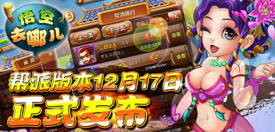 高品质卡牌手机网游《悟空去哪儿》,将在12月17日正式进行版本大更新。本次更新加入了玩家们期待的帮派玩法,同时还在各方面都进行了调整,让游戏体验更好,更具有平衡性。