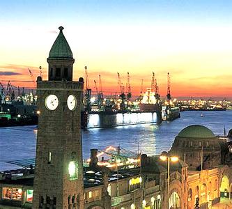 汉堡港位于德国 河下游的右岸,距人海口约76n mile,濒临黑尔戈兰 湾内,是德国最大的港口,也是欧洲第二大集装箱港。汉堡港的自由港由两个港口组成,