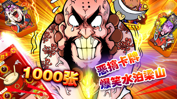 梁山小伙伴,天天撸水浒!作为年度最恶搞最Q的水浒题材卡牌游戏,多位知名漫画大师亲自操刀绘制了《梁山小伙伴》中的1000多张人物、武器、坐骑等卡牌形象,不但将宋江、高俅、林冲、武松等600多位正反两派人物恶搞成武将卡牌,打造了有史以来最囧最萌的水泊梁山;还有潘金莲、扈三娘、李师师、阎婆惜等水浒女汉子、女文青、绿茶婊出席“梁山海天盛筵”,包你一秒钟实现屌丝逆袭,上梁山、爽个够!
