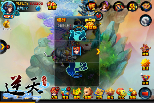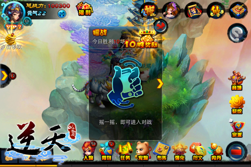 《逆天仙魔录》首创的摇战玩法除了让你体验迅速进入激情对决,还能在获得本日一胜、三胜与十胜之后,赢取战斗胜利的豪华礼包奖励。游戏并没有摇战的次数限制,所以只要你有空,一天摇上无数次,再进行无数次的PK也不成问题,但只有在前10次胜利的过程中可以获得3次奖励。