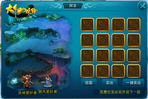 天宝出世,有德者居之!这句话虽是人们常说的口头禅,却也有一定的道理在其中。进入秘境后,玩家可以探寻到高品质的紫色红色黄色装备、高级宝石、还原丹等高级道具,却也可能获得蓝色装备、元灵、元气等普通道具。在《大仙饶命》中,秘境寻宝可分为三种形式,按照寻宝等级和价格从高到低分别为:寿星、禄星、福星,玩家寻宝的等级越高,则寻到的宝贝品质就越高。
