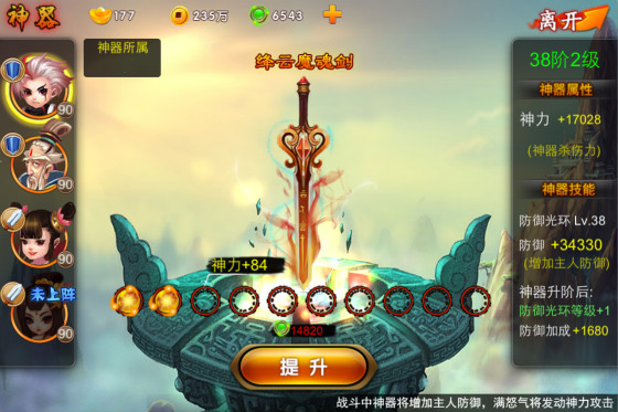 《囧西游》有着跟端游媲美的最强装备系统,提升等级后,逐步用高等级装备替换低等级装备,进阶、强化、镶嵌缺一不可。激活专属神器,提升神器等级,在战斗中神器也将发挥巨大的攻击力哦。最后还要特别说明下剑使卦象卦象选择,防御为主,卦象选择上除了后期必上的增减伤卦象外,格挡、破击和生命这三个卦象也是主要选择的,暴击和攻击卦象个人不建议!