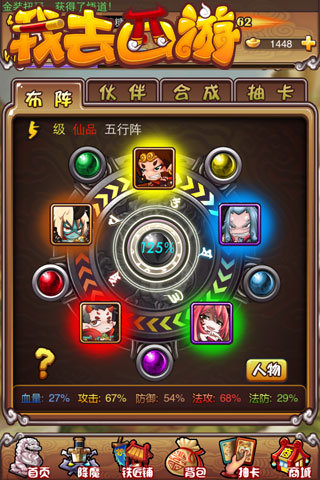 在这凶险的西行路上,作为主角的你,遇到各种拦路小怪或者英武BOSS(金角大王:英武?本大王还很英俊,妹子们……啊!主角:掉卡牌了,好棒!),简直是命中注定。但终要成为传说的神人,怎能屈服!?《我去西游》千百种绚丽技能任你挑选,BOSS从此只有向你求饶!还有自由搭配的各色装备,攻防流也好,纯法术流也罢,无论怎样都能穿出你独有的风格!是不是已经跃跃欲试了?