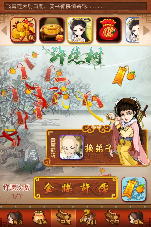 2013年的圣诞节您有怎样新年愿望?大胆喊出来《大掌门》圆你所愿!和亿万武侠迷一起见证奇迹,参与官方微博许愿活动的玩家将有机会获得甲级武功包、超值双诞礼包、Q币礼包、话费礼包等诸多精美礼品,赶紧列好你的新年愿望清单吧?