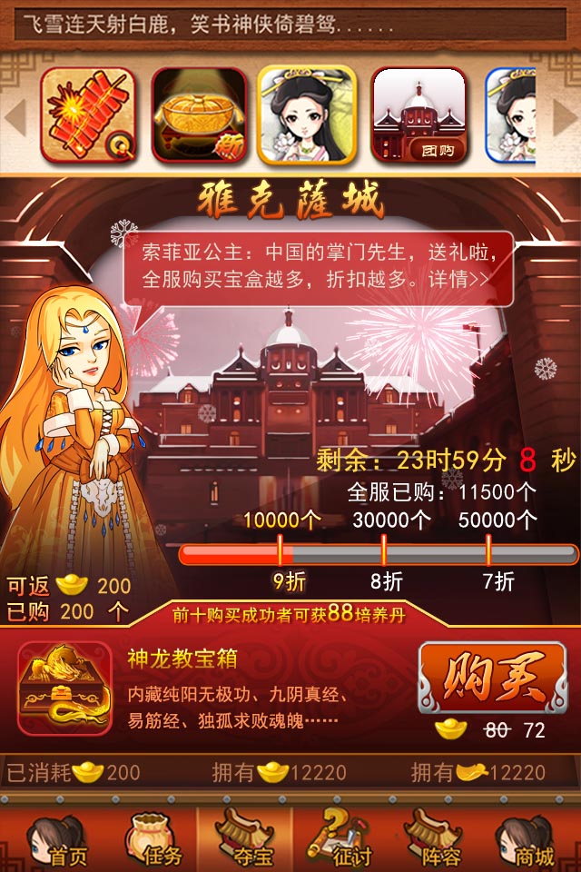 史上最“贱”团购汹涌而来,圣诞节期间购买“神龙教礼盒”即可享受超低折扣,买的越多折扣越多,活动结束后官方给予玩家巨额元宝返还,一年只有这1次,错过哭也没用!