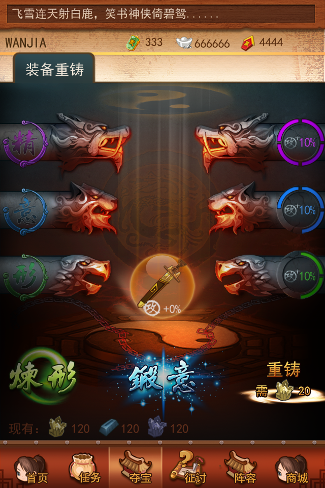 引爆圣诞激情,重铸装备,再战江湖!亿万掌门期盼已久“装备重铸”系统震撼上线,玩家可将废旧的装备进行熔炼从而得到“重铸材料”,重铸后的装备属性将得到极大的提升,重铸时代来临,人人都能拥有神兵利器!