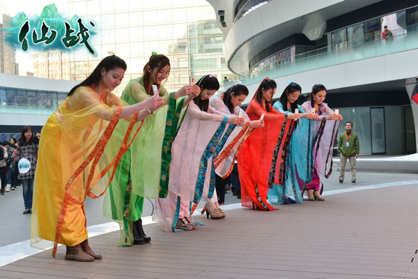 银河soho是地产大亨潘石屹得意之作,也是北京标志性建筑之一,但在寒冬的时日这里却稍显冷清,直到现场突然的“莺歌燕舞”,520名青春洋溢的女大学生空降现场,《仙战》开始在认证官的组织下挑战吉尼斯记录,在经历了三次的现场反复试玩之后,终于挑战成功,现场欢呼声也打破了北京雾霾重重的氛围。