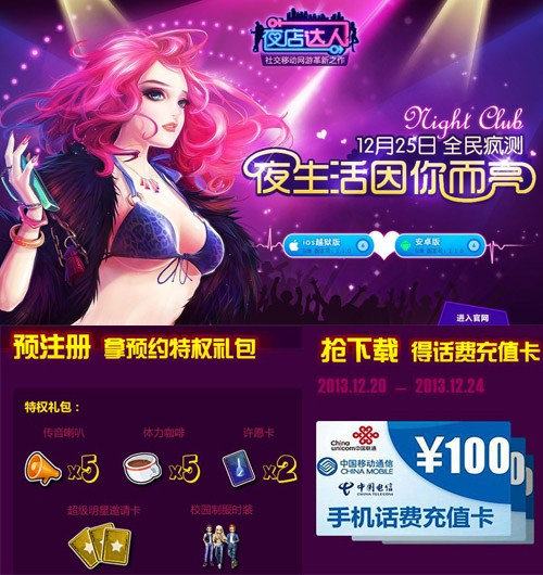 近日,“《夜店达人》苹果审核被卡 购百台土豪金攒RP”这样一则新闻在无数“夜粉”中引起了轩然大波,甚至还有人对我们曾经宣布过的12月25日全民疯测还能否开启产生质疑。在此小夜夜给大家服一剂定心丸:《夜店达人》全民疯测12月25日一定如约进行,百台土豪金也正是为活动准备的奖励!“预注册拿预约特权礼包”和“秀安装女神送话费”两大活动现已开启,赶快来参加吧!