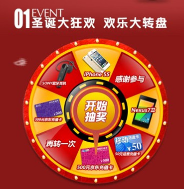 活动奖品:Iphone5s;Nexus7Ⅱ;500元京东充值卡;300元京东卡;蓝牙耳机;50元电话卡