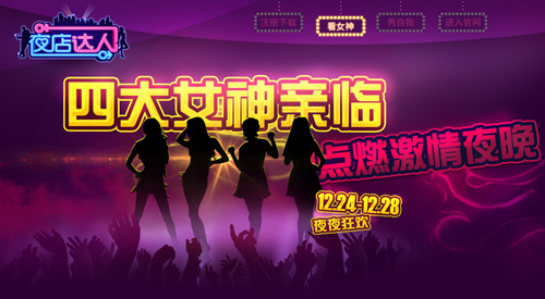 《夜店达人》重磅活动“四大女神亲临,点燃激情之夜”今日正式上线,作为12月25日全民疯测备受关注的重头戏,这四位一直以来只闻其声不见其人,蒙着神秘面纱的女神今日终于迎来了揭晓真相的日子,请大家擦亮双眼来欣赏吧!
