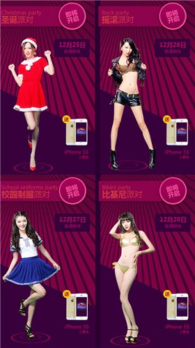 女神们分别代表着圣诞、摇滚、校园和比基尼四大派对主题,届时大家可以与她们在活动主题派对内进行“亲密接触”,是不是开始有点小激动了呢?