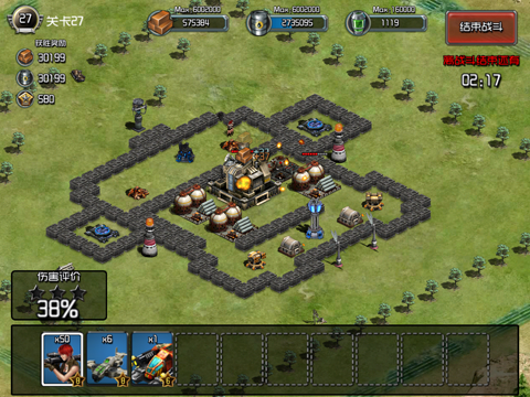 指挥作战固然重要,自己基地的建设也不能落后。主基地、矿厂和炼油厂是游戏的经济核心,玩家还要建造仓库来储存资源。除了兵营、兵工厂这些产兵建筑之外,建设城墙、机枪塔、导弹塔、闪电塔这样的防御建筑才是防守的重点。敌人的攻击手段多种多样,要如何应对?各种防御塔对空、对地、对点、对面的效果都需要好好把握,再修建城墙加固建筑,将所有敌人都拒之门外!