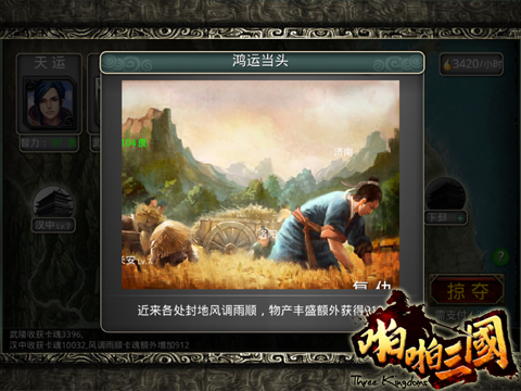 北风寒心意暖,岁末喜迎大丰收!除了好玩有趣的全民论坛送好礼活动外,《啪啪三国》更在游戏内准备了丰富大礼。辛苦付出了一年,相信大家年末都能有个好收获,而在游戏中更是如此,《啪啪三国》丰收月进入最后双旦庆典周:竞技场获胜卡魂大幅提升、全民PK其乐融融;封地产出卡魂增产、封地掠夺卡魂消耗减半,你争我夺换了迎新年。除此之外,《啪啪三国》更奉上10*24富商快跑不间断、精选抽卡天运全翻倍等,让你尽享史上最强丰收活动,物资满满迎佳节!