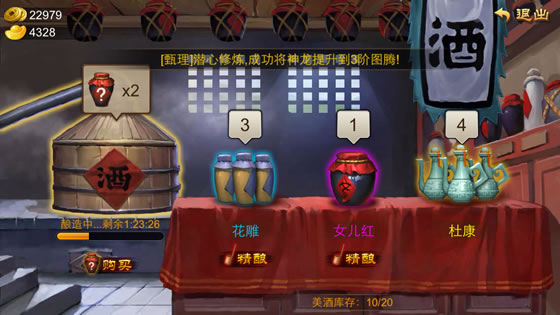 三国时代,那是一个大口吃肉,大口喝酒的年代,《乱世之刃2》作为一款以三国乱世为背景的手游怎能少了美酒,大碗佳酿入口英雄实力倍增。游戏特色的美酒系统当角色等级达到13级时将解锁,美酒可用于主线战斗时获得多倍的经验、铜钱奖励。记得战斗之前先饮上一壶美酒再上路,特别是“扫荡”千军万马时美酒更是不可或缺的。