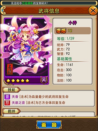 无论任何一款游戏,最重要的就是持续力,那必须不可少的就是奶妈了!目前游戏开放的紫色武将很少,在这里就只能是略作介绍了,任何奶妈都是可遇不可求的。