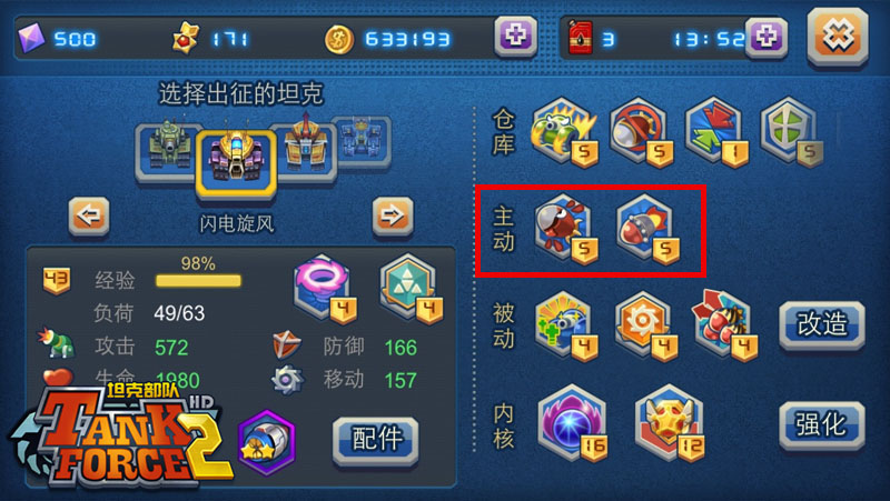 《坦克部队2》每种坦克都有各自的特点,闪电旋风第二战遇到的是注重高攻击的轰天雷。轰天雷是《坦克部队2》中唯一没有主动技能的特种坦克,但优点是普通攻击远高于其他坦克,在配备高暴击的情况下,甚至一炮普攻的伤害要高于技能!这一战对闪电旋风来说异常艰难,脆弱的护甲根本无法与敌人对抗,只能凭借高移速和灵活的走位,与敌人展开游击战术,在运动中寻找机会消灭敌人。