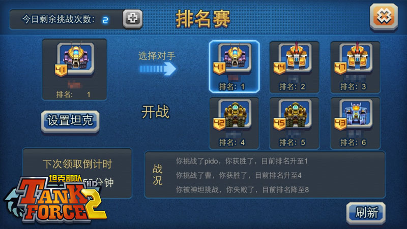 《坦克部队2》竞技场实时排名 脆皮快车登顶