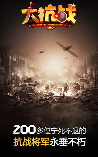 《大抗战》打造抗日英雄元素,玩家进入游戏即成为一名指挥官,率领诸多抗战名将与日军展开浴血拼杀。部队成为抵抗日军侵略的核心力量,玩家通过多种途径招募各式名将,为部队增强力量,以此不断推进抗战历史进程。对日宣战、调遣名将、收集装备、挑战甲级战犯,一条全新的抗战英雄之路将向玩家开启。