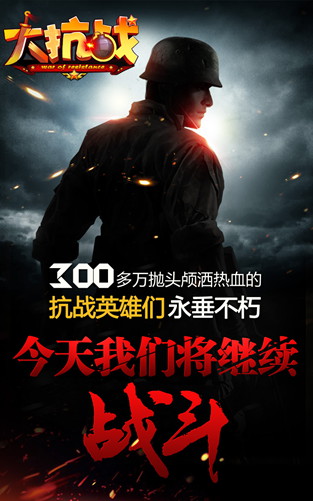 以鲜血纪念英雄,以伤痛铭记历史!顶级插画师力作,《大抗战》内测概念海报今日震撼首发。收名将杀鬼子,为国家浴血奋战,中国第一抗日手游《大抗战》1月11日11:00不删档内测,全民决战1937,将抗战进行到底!