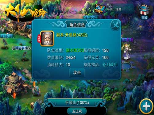 从表面上看,平顶妖山的统治者是人们俗称的金银二王,此二人本是看守太上老君丹炉的童子,因偷盗了紫金红葫芦和琉璃玉净瓶而下界作乱成为平顶山的妖族首领。但玩家闯到副本的最后便会发现,副本的最终boss实际上是仙魔佛三界鼎鼎有名的太上老君。值得庆幸的是私自下凡的太上老君并没有掌握其巅峰时期的战力,他最大的依仗是一件蓝色品质的苍月战甲。如果能将其顺利击败,那么苍月战甲自然会成为诸位大仙的囊中之物。