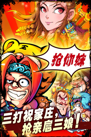 不但可以刷副本抢扈三娘(“抢你妹”),而且玩家还可以挑战作为“六大恶人”之一的潘金莲,喜欢找基友的玩家可以刷副本抢花荣、抢武松,重口味青年还可以抢李逵和鲁智深。2014新年找乐新手段,《梁山小伙伴》里“抢你妹”,拿起你的手机一起来抢吧!现在,《梁山小伙伴》已登陆国内各大安卓游戏平台,玩家可通过平台下载游戏,一起“抢你妹”!